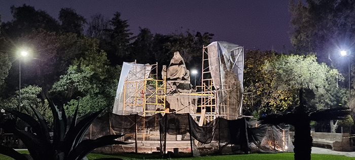 Iluminación de hito patrimonial y zona peatonal con luminarias solares. Intervención artística y funcional.