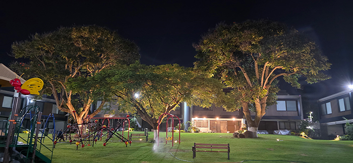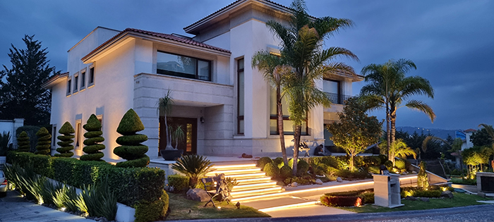 Iluminación arquitectónica de fuentes, fachadas, jardines y canchas deportivas. Elegancia total.